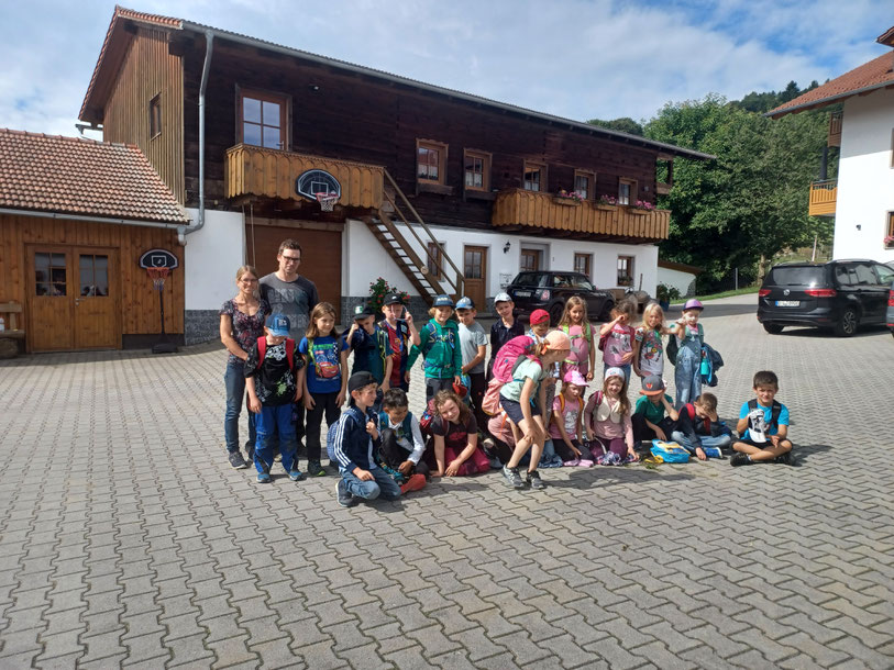 Einen spannenden Vormittag erlebten die Kinder der 1. Klasse als sie ihren Klassenkameraden Felix auf dem Erlebnisbauernhof der Familie besuchen durften.